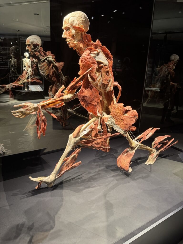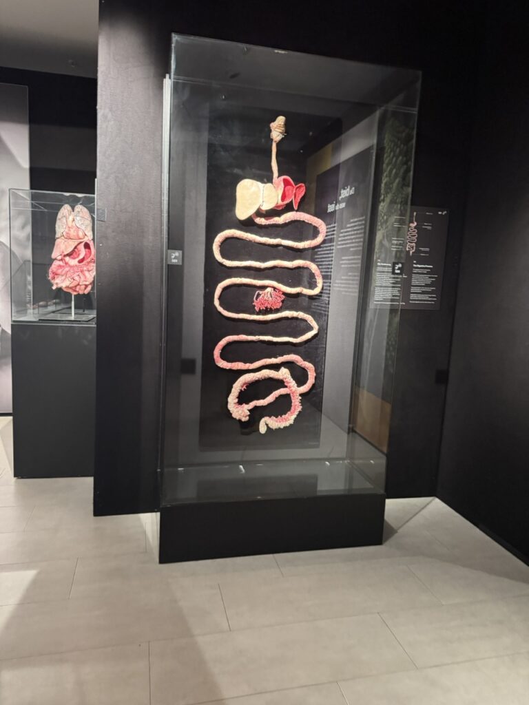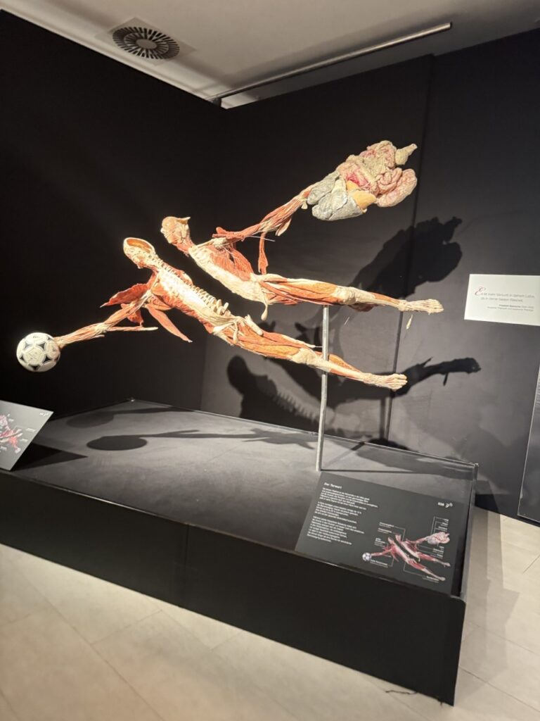 Vor Ort erkundeten die Schülerinnen und Schüler die Ausstellung eigenständig in kleinen Gruppen. So konnten sie sich intensiv mit anatomischen Grundlagen, der Funktionsweise einzelner Organe sowie mit wichtigen Aspekten eines gesundheitsbewussten Lebensstils beschäftigen. Die realitätsnahen und anschaulichen Darstellungen halfen dabei, biologische Zusammenhänge besser zu verstehen.