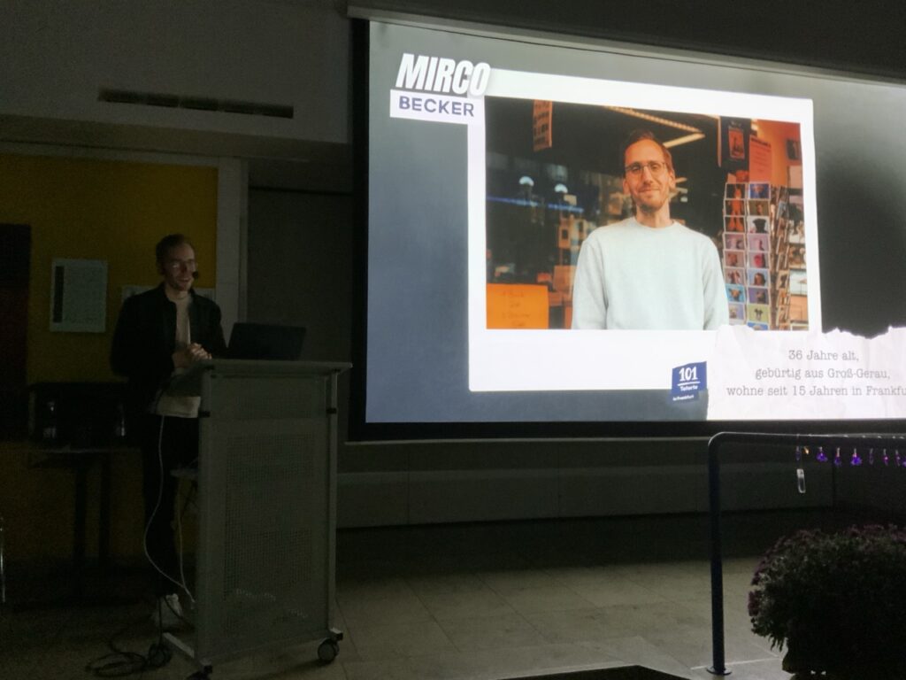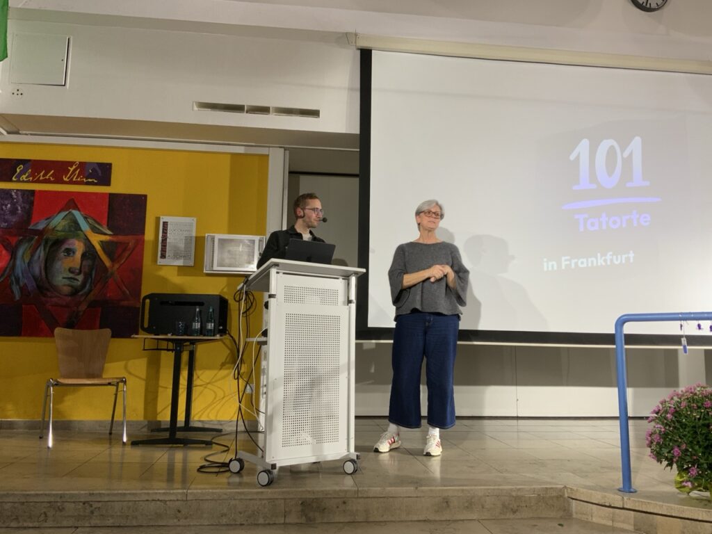 Becker präsentierte sein Werk „101 Tatorte in Frankfurt“ – eine fesselnde Mischung aus Krimi, Geschichte und Stadtführung. Mit viel Humor und eindrucksvoller Erzählkunst nahm er die Zuhörerinnen und Zuhörer mit auf einen „wilden Ritt durch 101 Tatorte“, die nicht nur spannende Kriminalgeschichten, sondern auch die bewegte Geschichte Frankfurts erlebbar machten.